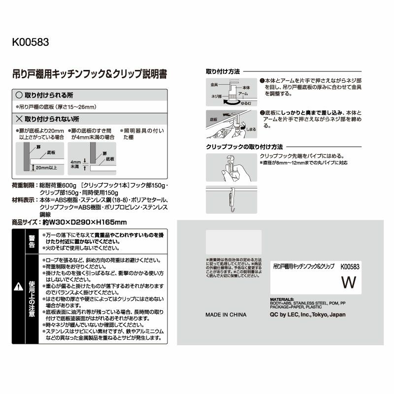 他の画像を見る 送料無料 吊り戸棚の下にツールを掛けられる 吊り戸棚用 キッチンフック & クリップ (吊り下げ取付) ホワイト 耐荷重600g 通常価格 ¥ 1,780 のところ ¥ 1,691 税込 お気に入りに登録する