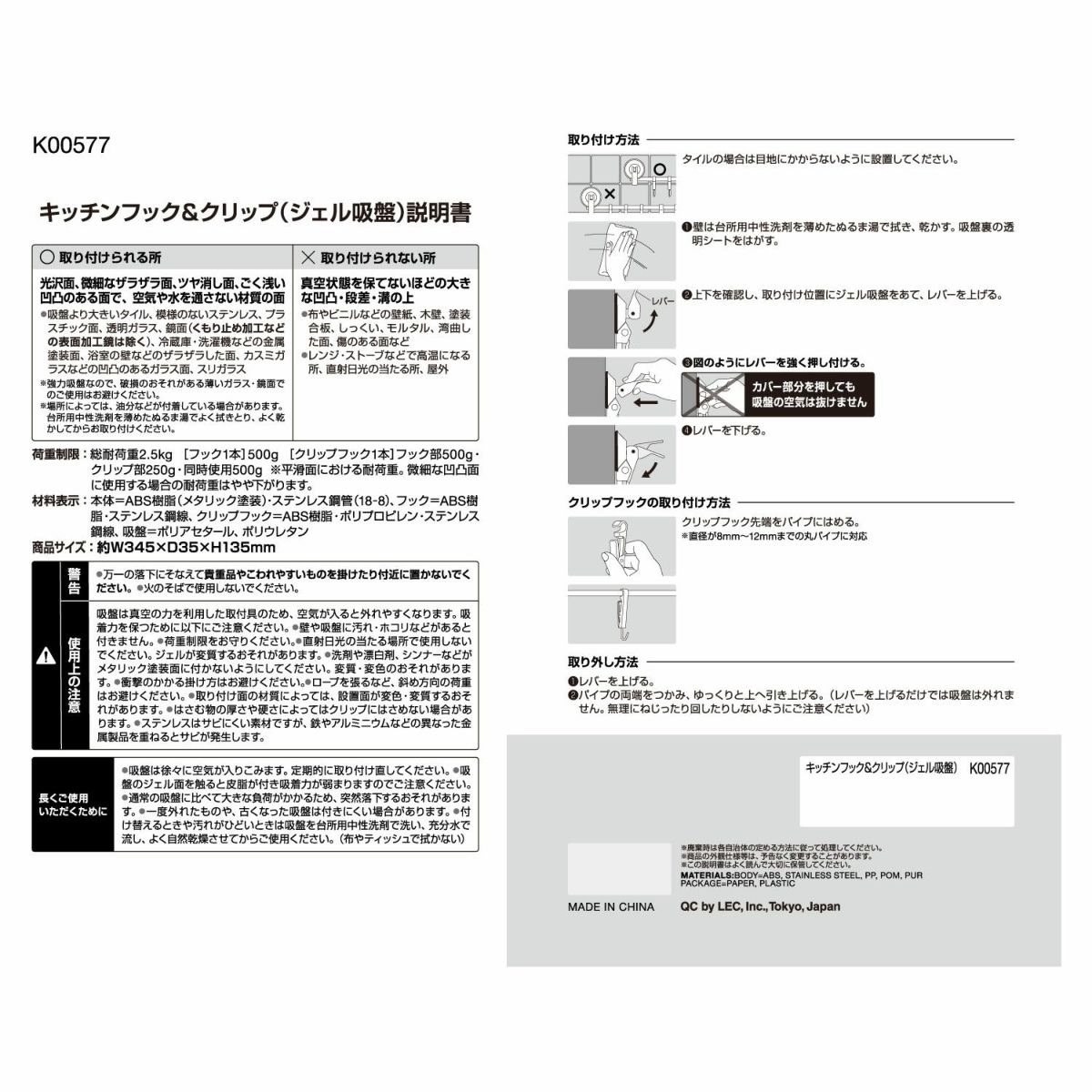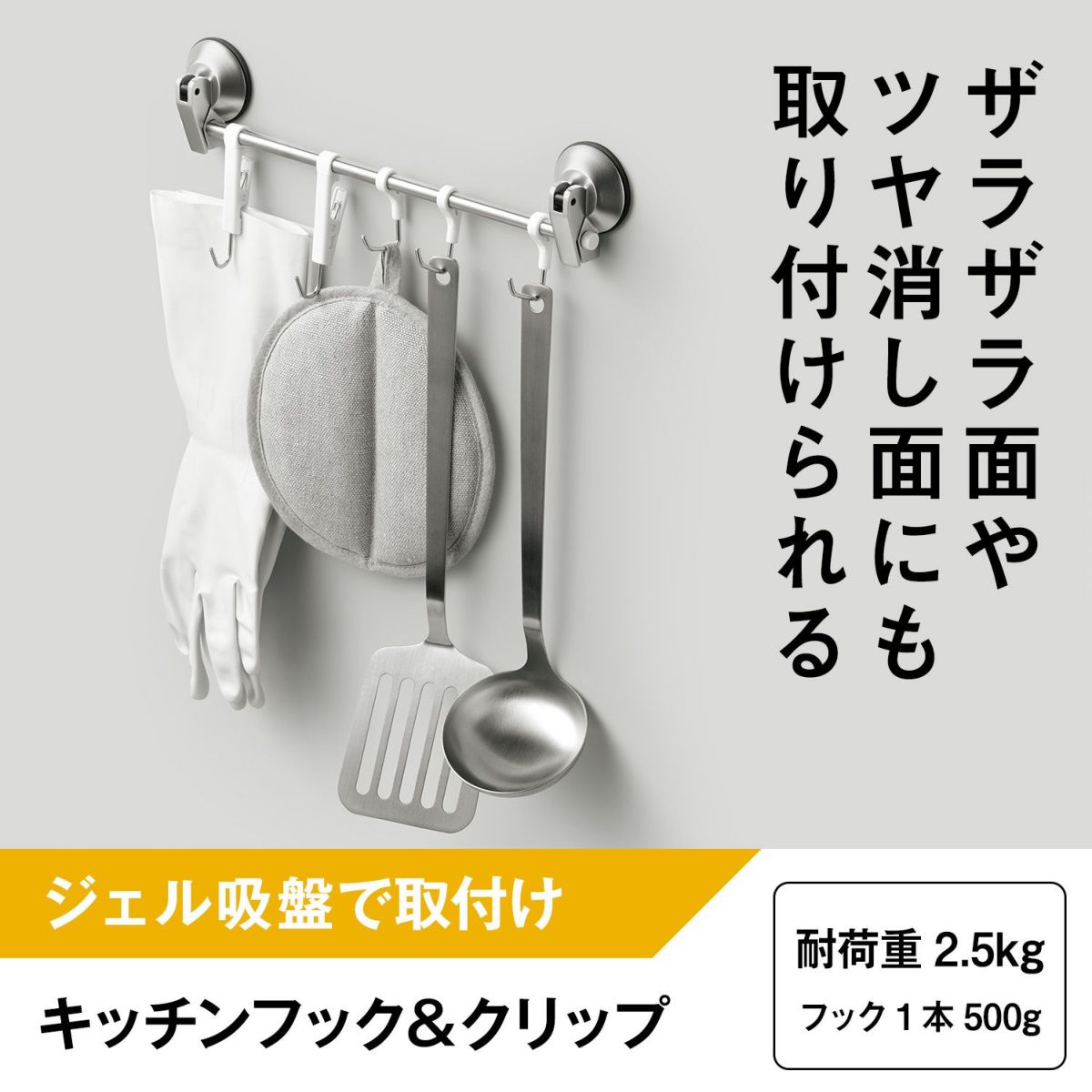 他の画像を見る 送料無料 ザラザラ面やツヤ消し面にも取り付けられる キッチンフック & クリップ (ジェル吸盤) 耐荷重2.5kg 通常価格 ¥ 1,958 のところ ¥ 1,860 税込 お気に入りに登録する
