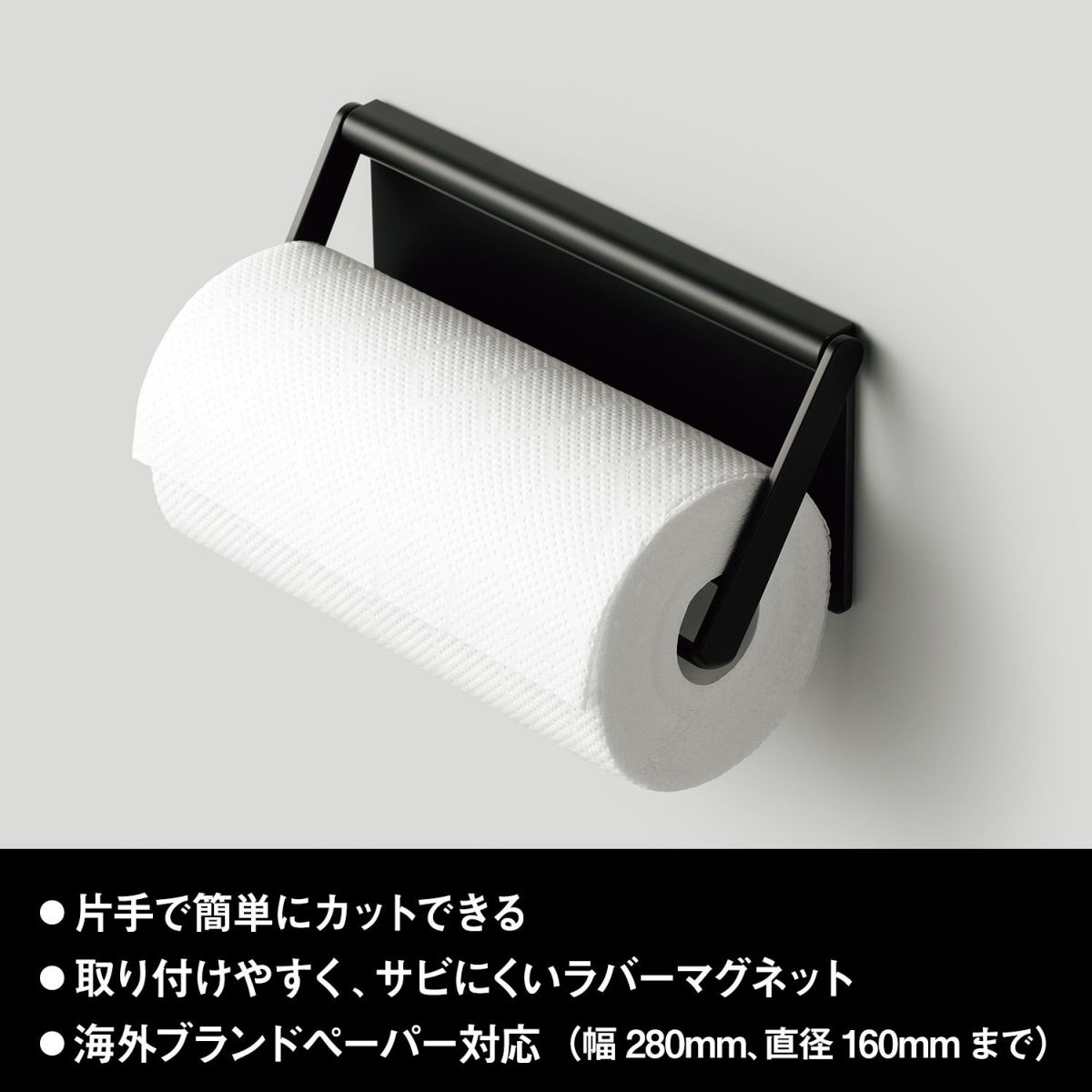 他の画像を見る 送料無料 片手で簡単にカットできる キッチンペーパーホルダー ブラック (ラバーマグネット) 耐荷重1kg 通常価格 ¥ 1,480 のところ ¥ 1,406 税込 お気に入りに登録する