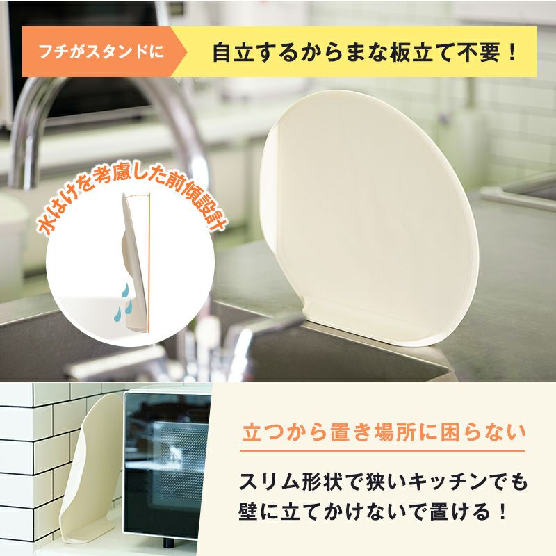 ●フチがスタンド部分になるので自立します。