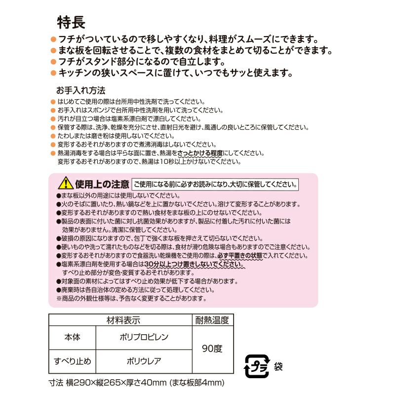 ●抗菌剤配合。塩素系漂白剤・アルコール消毒・熱湯消毒・食洗機OK。