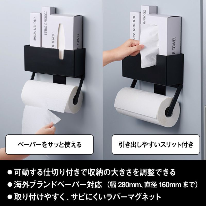 ●ラップやペーパーをまとめて収納できます。 ●引き出しやすいスリット付きです。 ●海外製ロールペーパー対応です。 ●サビにくいラバーマグネット付きです。