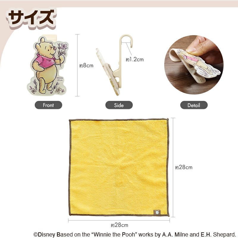 くまのプーさんのクリアクリップ付きで好きな所に吊るしておけます。 クリップフック付き マイクロファイバークロス くまのプーさん