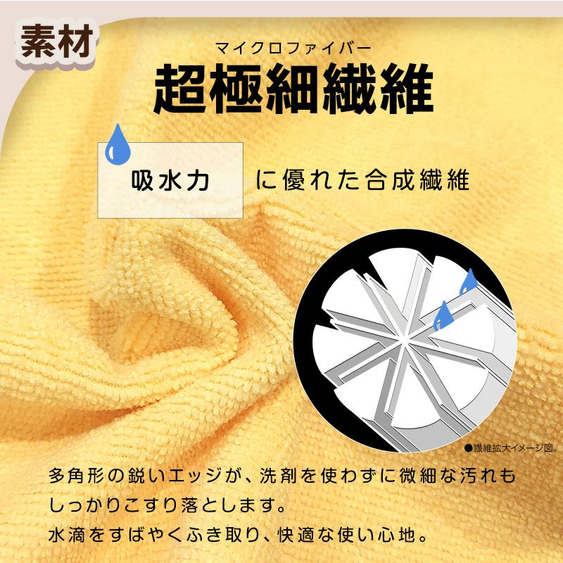 ●超極細繊維(マイクロファイバー)が、洗剤を使わなくても油汚れやほこりなどをスッキリ落とします。
