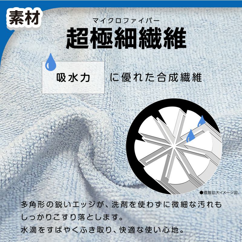 ●超極細繊維(マイクロファイバー)が、洗剤を使わなくても油汚れやほこりなどをスッキリ落とします。