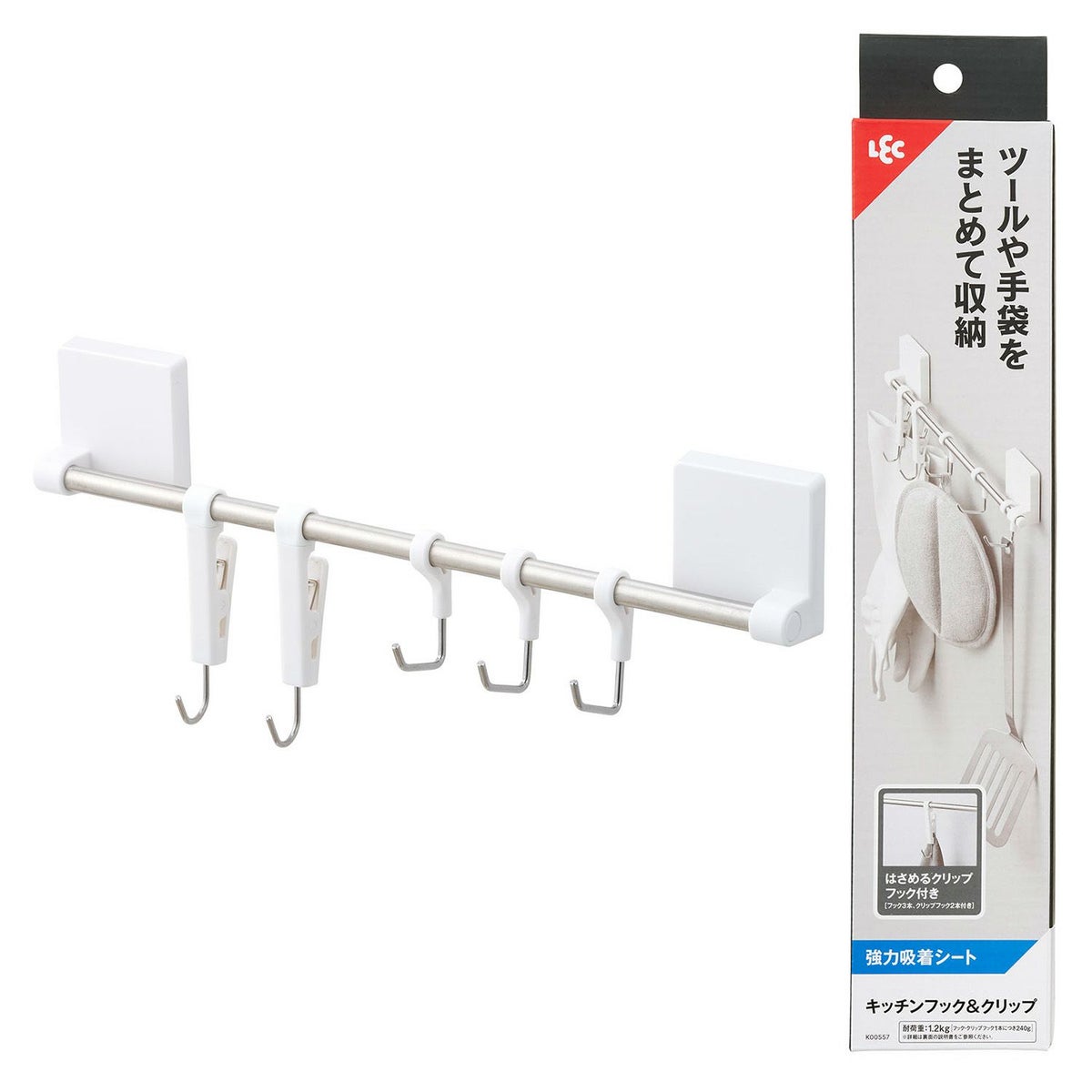 他の画像を見る 送料無料 はさめるクリップ、フック付き(フック3本、クリップフック2本付き) キッチンフック & クリップ (強力吸着シート) 耐荷重1.2kg ¥ 1,580 税込 お気に入りに登録する