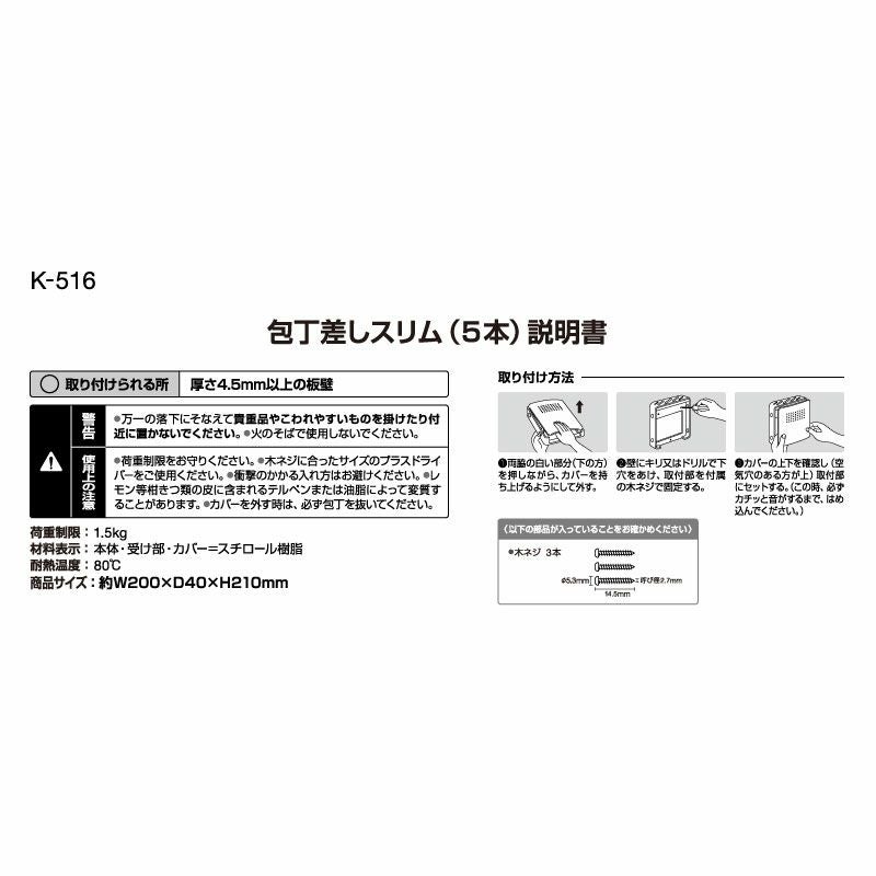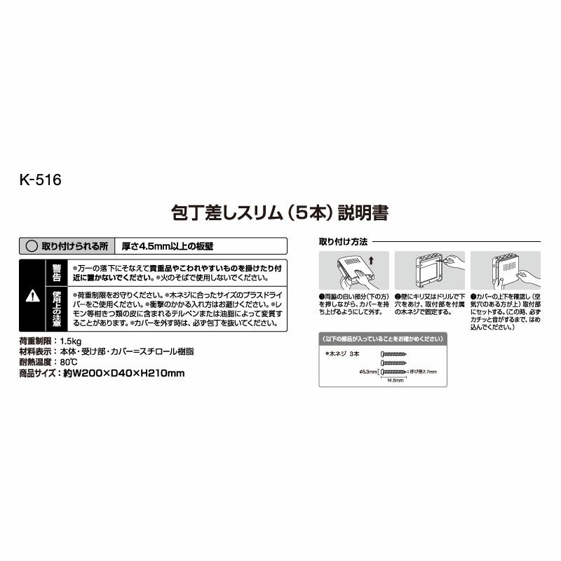 ●5本の包丁が収納可能です。