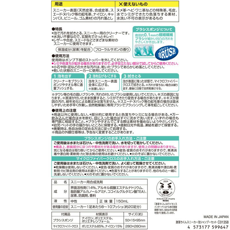 激落ちくんのスニーカー表面用のドライシャンプー。3つの洗浄成分配合。水洗い不要、拭きとるだけでOKです。
