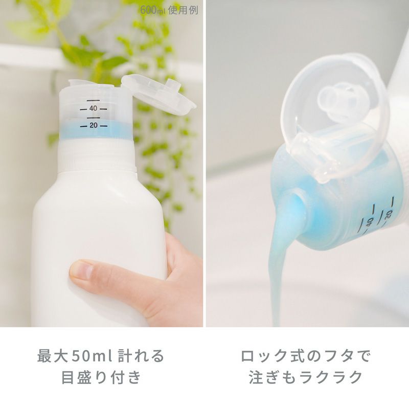 ●市販の詰め替え用液体洗剤を入れられる、洗濯用の詰め替えボトル(600ml)です。