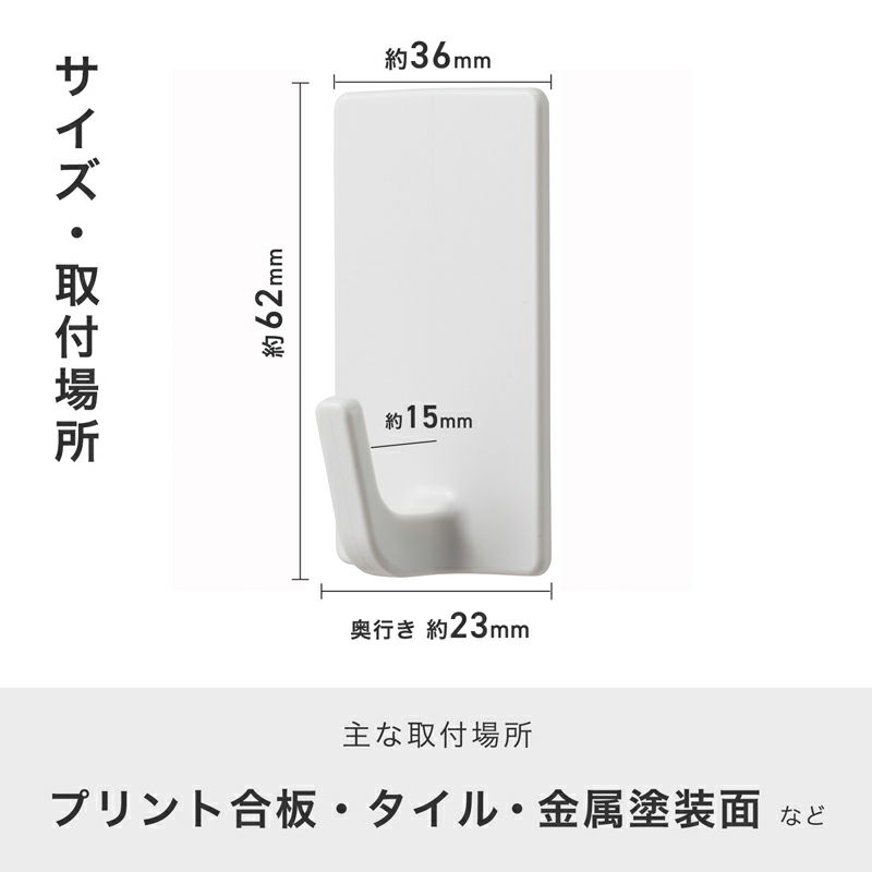 ●強い粘着力で固定 ●薄くても丈夫なポリカ―ボネート製 【主な取り付け場所】 プリント合板・タイル・金属塗装面 (柱、板壁、プリント合板、タイル、冷蔵庫・洗濯機の金属塗装面など)