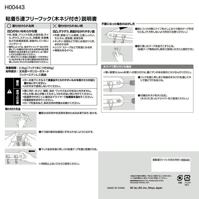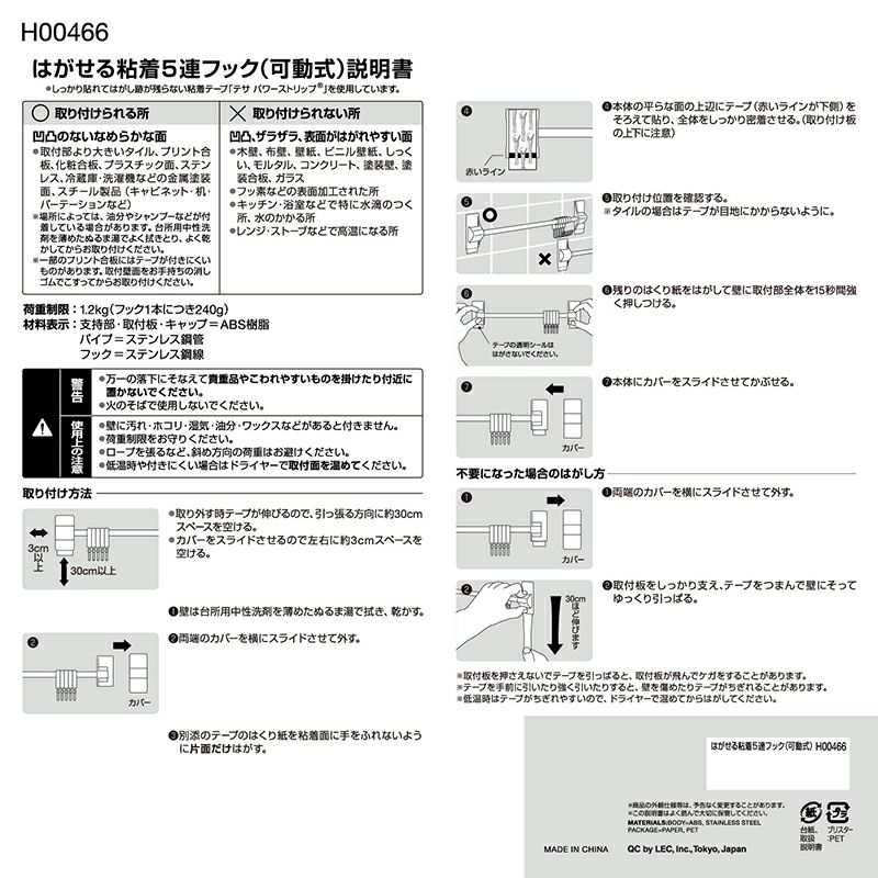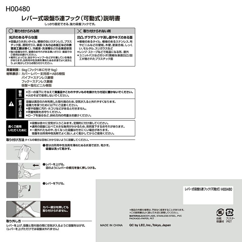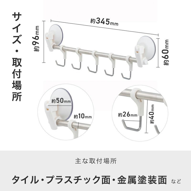 他の画像を見る 特価品 吸着力低下お知らせ機能付き。赤いラインが見えたらプッシュでしっかり吸い付きます。 プッシュ式吸盤 5連フック (可動式) 耐荷重4.5kg ¥ 550 税込 お気に入りに登録する