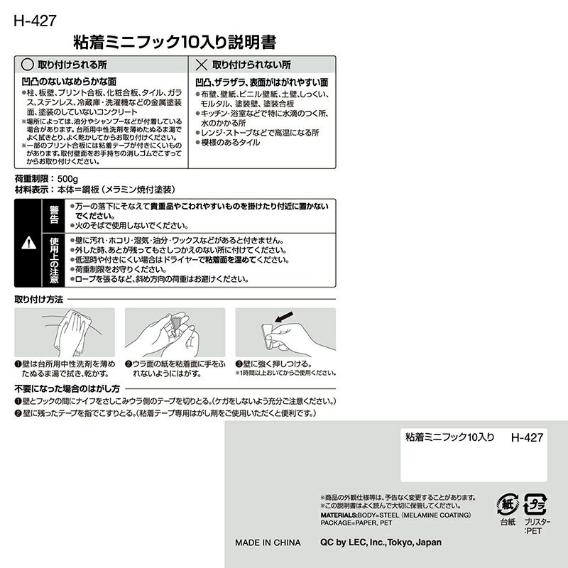 V-HO-006 粘着フック 選べるサイズ・色
