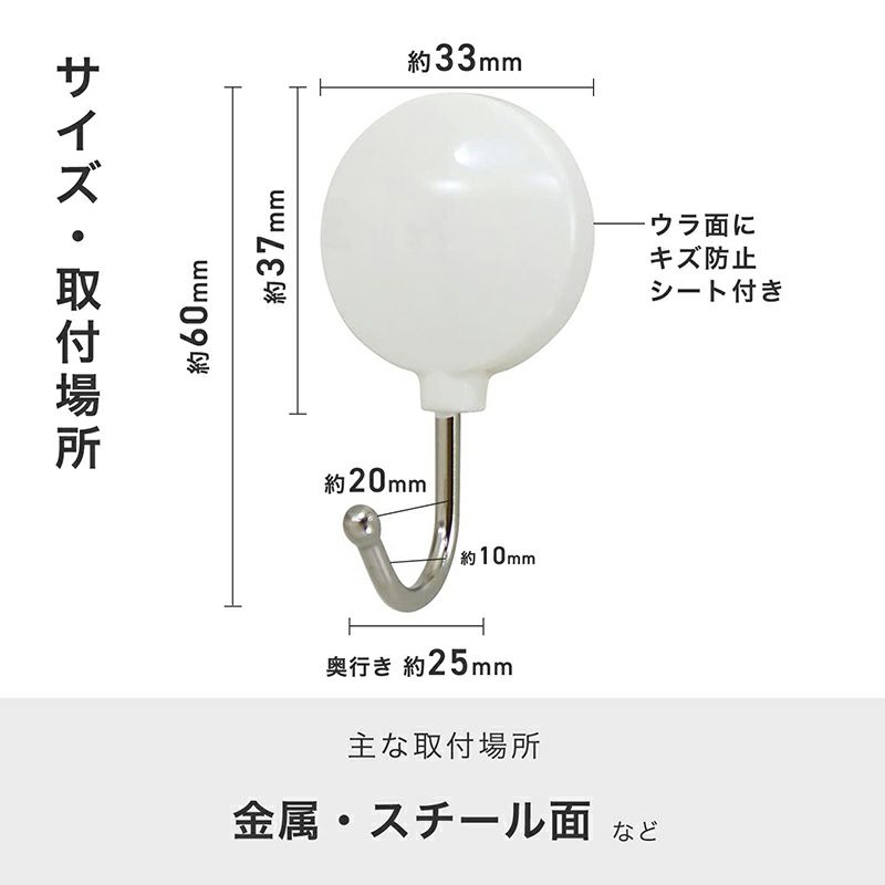 キッチンやデスク周りで活躍します。 マグネットフック 耐荷重500g 2個入