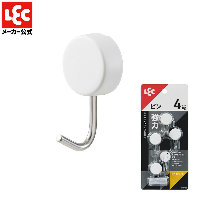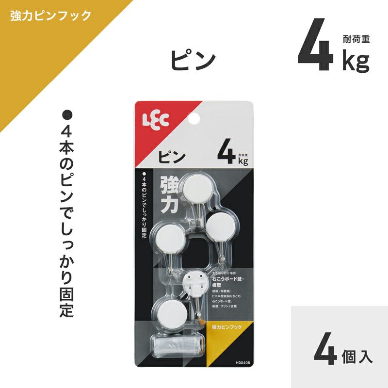 ●4本のピンでしっかり固定 【主な取り付け場所】 石こうボード壁・板壁 壁紙・布壁紙・ビニル壁紙貼りなどの石こうボード壁、板壁、プリント合板