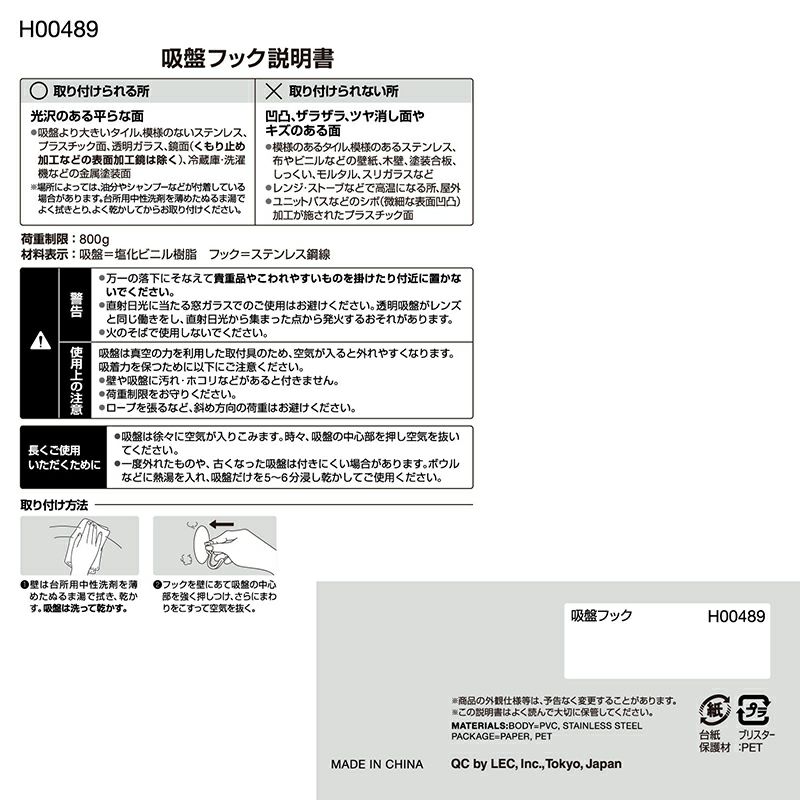 他の画像を見る 特価品 吸着力低下お知らせ機能付き。赤いラインが見えたらプッシュでしっかり吸い付きます。 プッシュ式吸盤 5連フック (可動式) 耐荷重4.5kg ¥ 550 税込 お気に入りに登録する