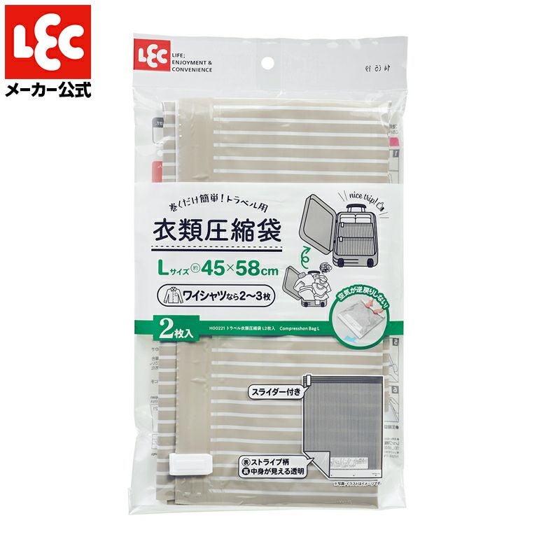 ●Lサイズ(45×58cm)2枚入り。ワイシャツなら2~3枚くらい、セーターなら1~2枚くらい入ります。