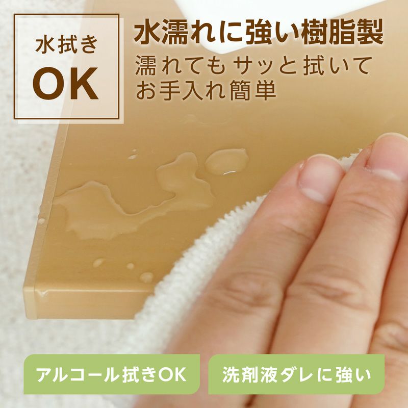 ●水に強いので汚れてもお手入れ簡単。洗面台まわりなど水がかかりやすい場所にも。