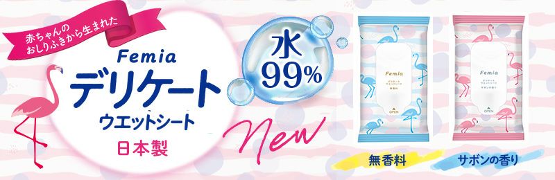 他の画像を見る 赤ちゃんの おしりふきから生まれた、女性のためのウエットシート Femia デリケート ウェットシート 無香料 20枚入×2個 通常価格 ¥ 398 のところ ¥ 378 税込 お気に入りに登録する