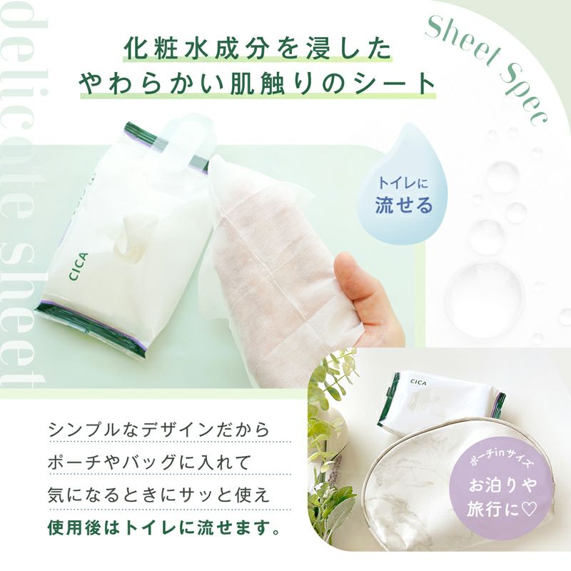 他の画像を見る お肌をやさしくふきとるCICA(シカ)ウェットシートシリーズ。 CICA メイク落としシート 28枚入×2個 水99% 無香料 通常価格 ¥ 548 のところ ¥ 521 税込 お気に入りに登録する