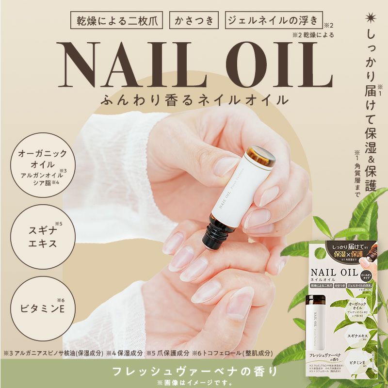 ※1 アルガンオイル(アルガニアスピノサ核油:保湿成分)、シア脂(保湿成分)、スギナエキス(爪保護成分)、ビタミンE(トコフェロール:整肌成分) ※2 角質層まで