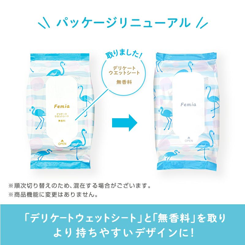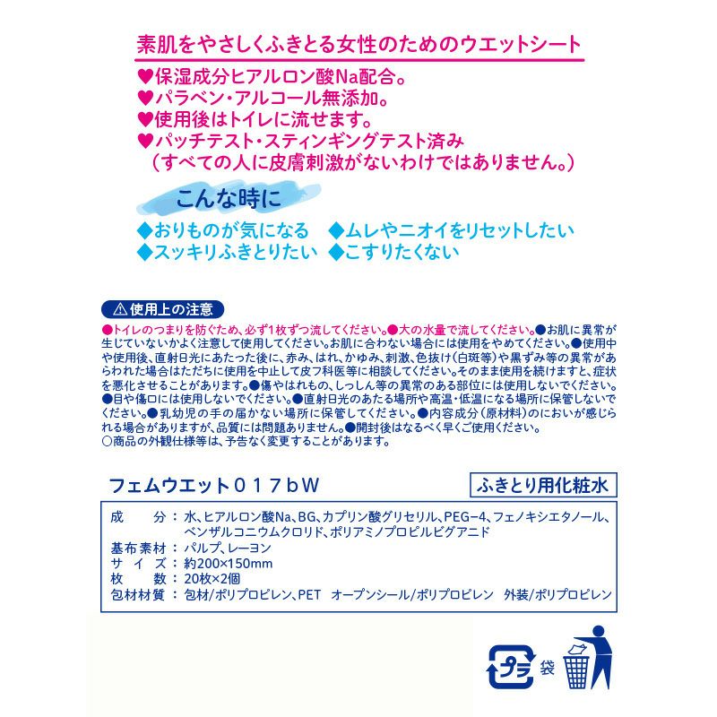 赤ちゃんの おしりふきから生まれた、女性のためのウエットシート Femia デリケート ウェットシート 無香料 20枚入×2個