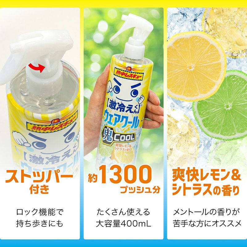 他の画像を見る 服にシューしてひんやり冷感長続き 激冷えくん 熱中レスキュー ウェアクール 鬼クール 爽快レモン&シトラスの香り 400ml 通常価格 ¥ 980 のところ ¥ 931 税込 お気に入りに登録する 在庫切れ