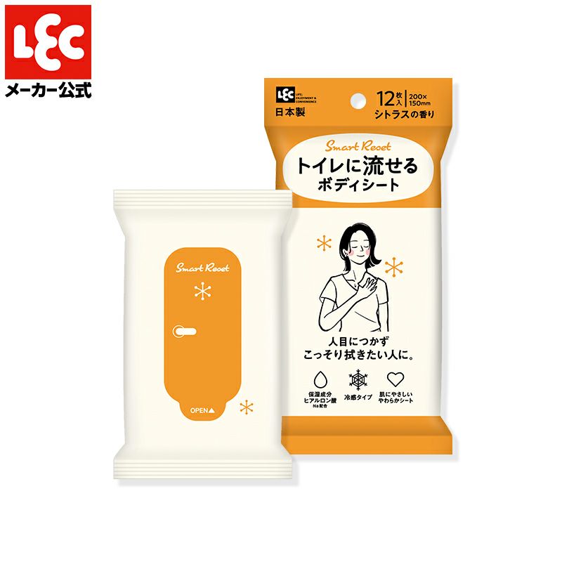 ●見えない場所で、スマートに汗も気持ちもリセット!トイレに流せるボディシートです。 ●水に流せる水解紙なので、トイレの個室で使用し、そのまま流すことができます。 ●デリケートゾーンシートでも使用している、肌にやさしいやわらかい素材を採用。 ●手のひらに持てる、丁度良い150×200mmサイズ。 ●ポーチやかばん、ポケットに入るスリムタイプ。 ●保湿成分のヒアルロン酸Na配合。 ●シトラスの香り ●日本製