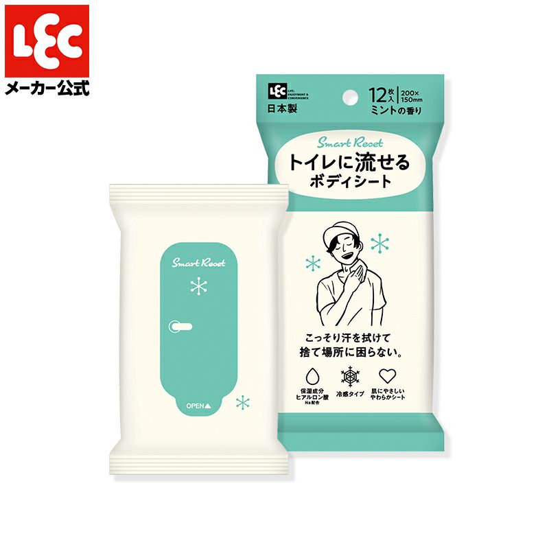 ●見えない場所で、スマートに汗も気持ちもリセット!トイレに流せるボディシートです。 ●水に流せる水解紙なので、トイレの個室で使用し、そのまま流すことができます。 ●デリケートゾーンシートでも使用している、肌にやさしいやわらかい素材を採用。 ●手のひらに持てる、丁度良い150×200mmサイズ。 ●ポーチやかばん、ポケットに入るスリムタイプ。 ●保湿成分のヒアルロン酸Na配合。 ●ミントの香り ●日本製