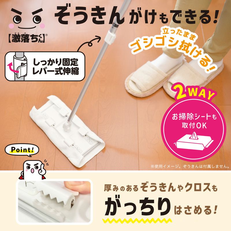 ゴシゴシ拭ける!ぞうきんもOK 激落ちくん クリップ付き フロアワイパー 伸縮タイプ or ジョイントタイプ