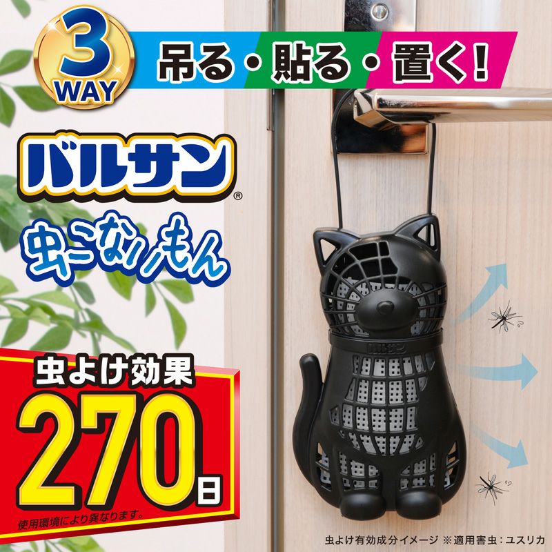 いや~な虫の侵入をブロック。置く・吊るす・貼るの便利な3way! バルサン 虫こないもん 3WAY ネコ(270日)
