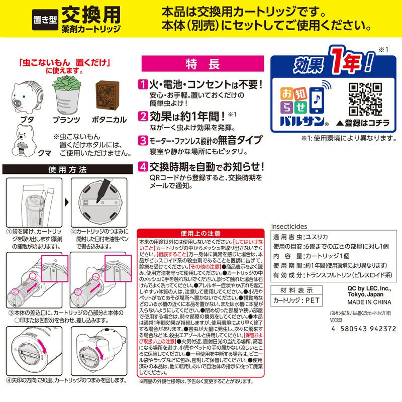 +1年の効果を! 虫こないもん専用 リフィルです。 バルサン 虫こないもん 置くだけ 1年 交換用 カートリッジ 1個