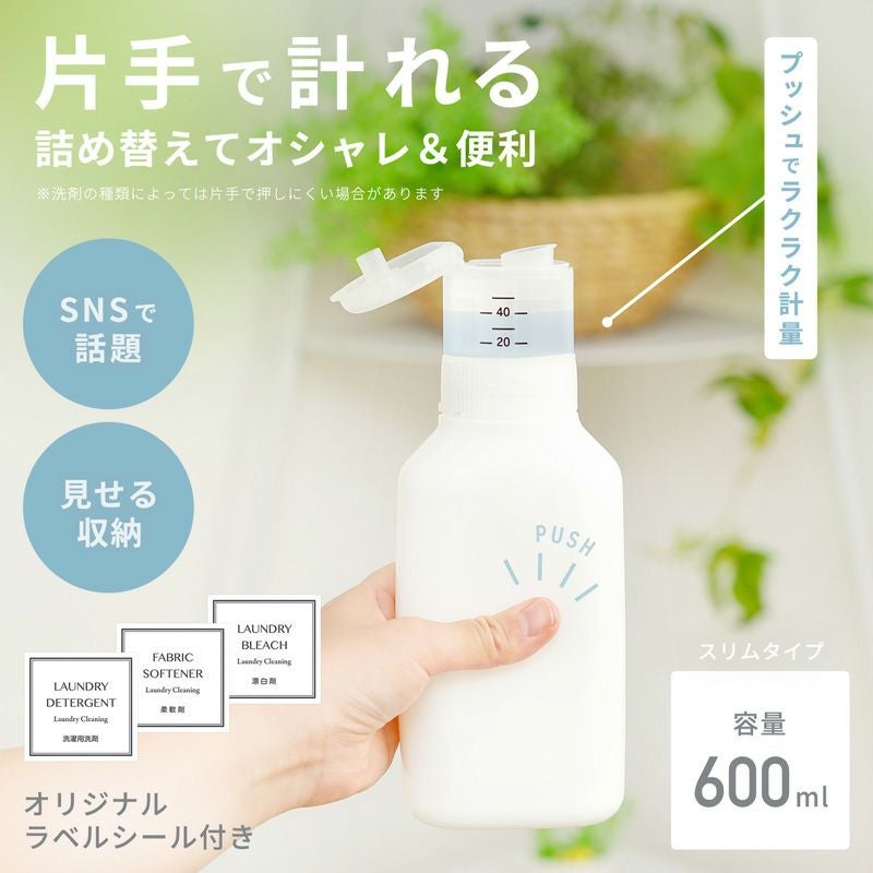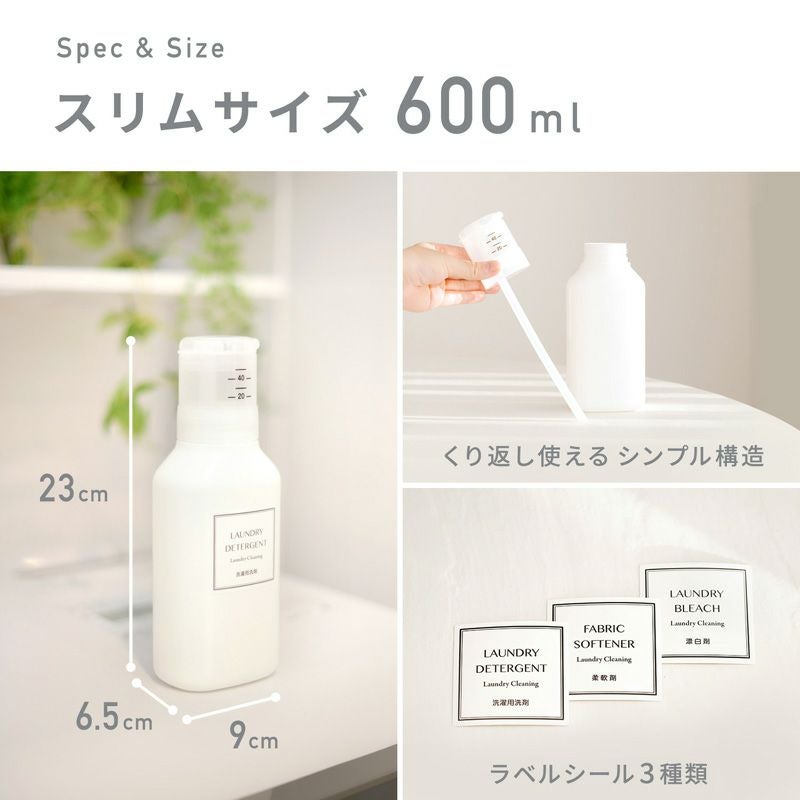 ●市販の詰め替え用液体洗剤を入れられる、洗濯用の詰め替えボトル(600ml)です。
