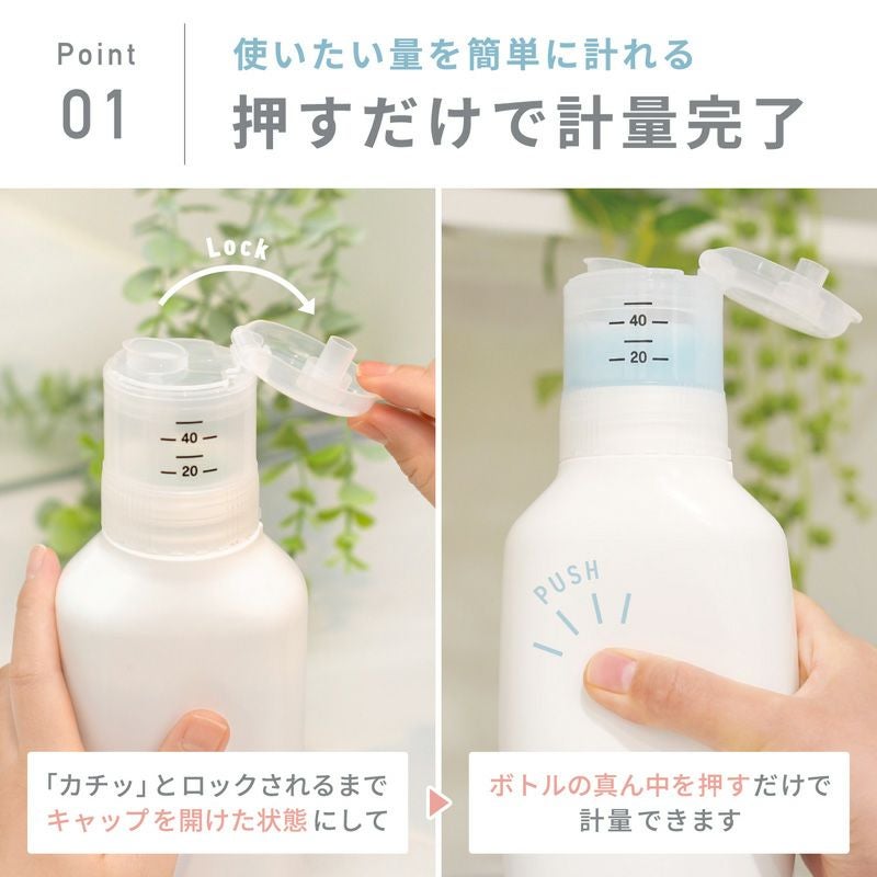 ●計量が簡単な、押して計るタイプのボトルです。