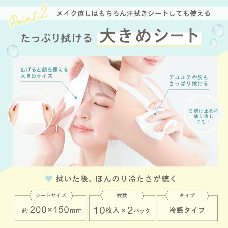 ●顔の汗、べタつきをすっきりオフしながらお肌をしっとり整えます。(保湿成分ヒアルロン酸Na、グリセリン配合)