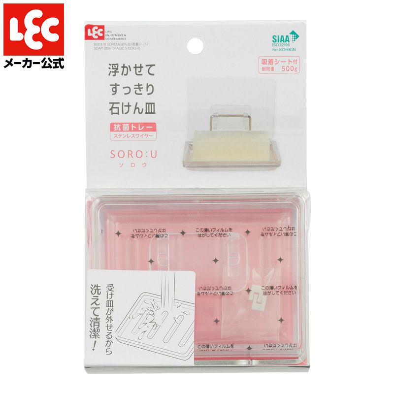 浮かせられるから洗面台広々。ステンレスワイヤーと透明トレーで清潔感のあるデザイン。シンプルだからお手入れもしやすい。デザイン性と利便性を兼ね備えた石けん皿です。耐荷重は500gまでです。