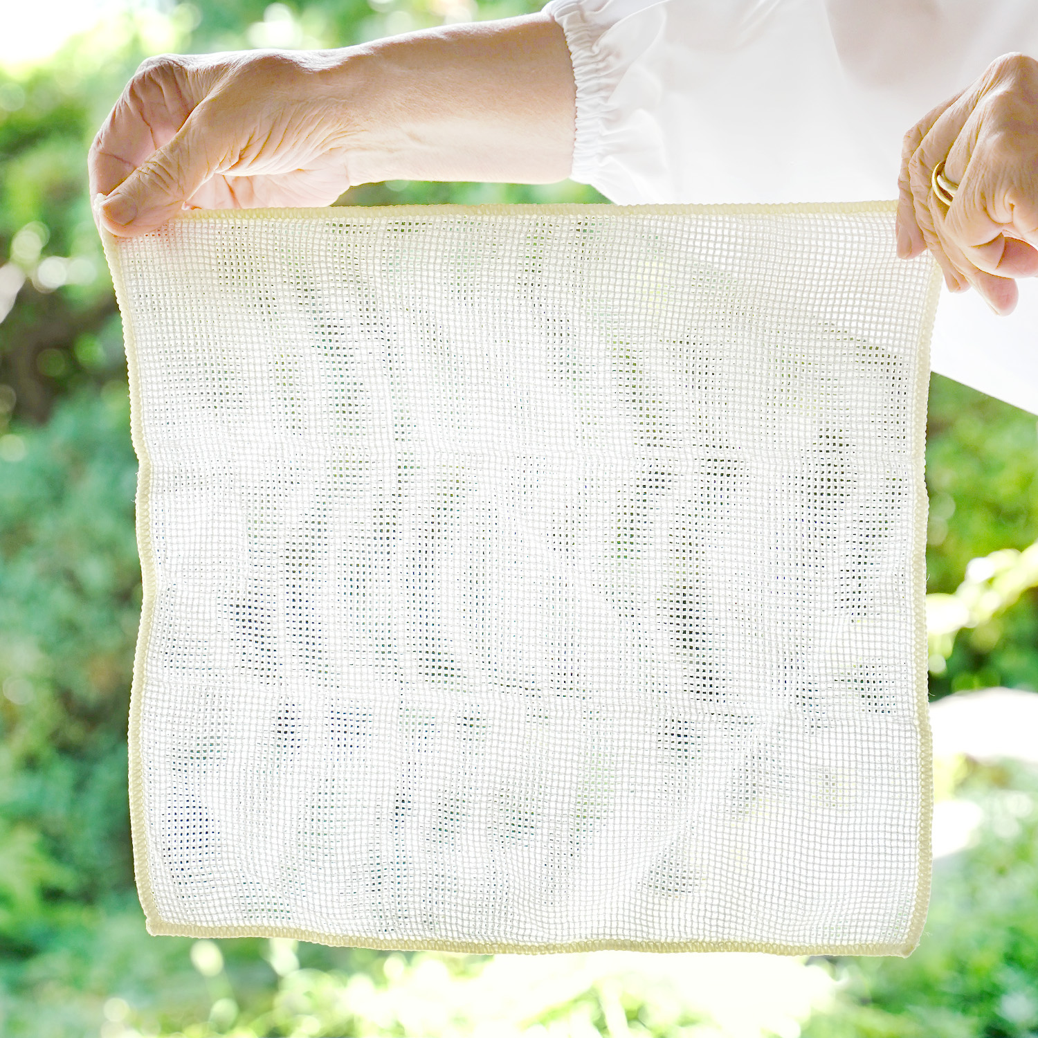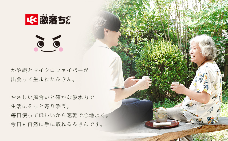 かや織の「速乾」とマイクロファイバーの「吸水力」のいいところどりした台所用ふきんです。