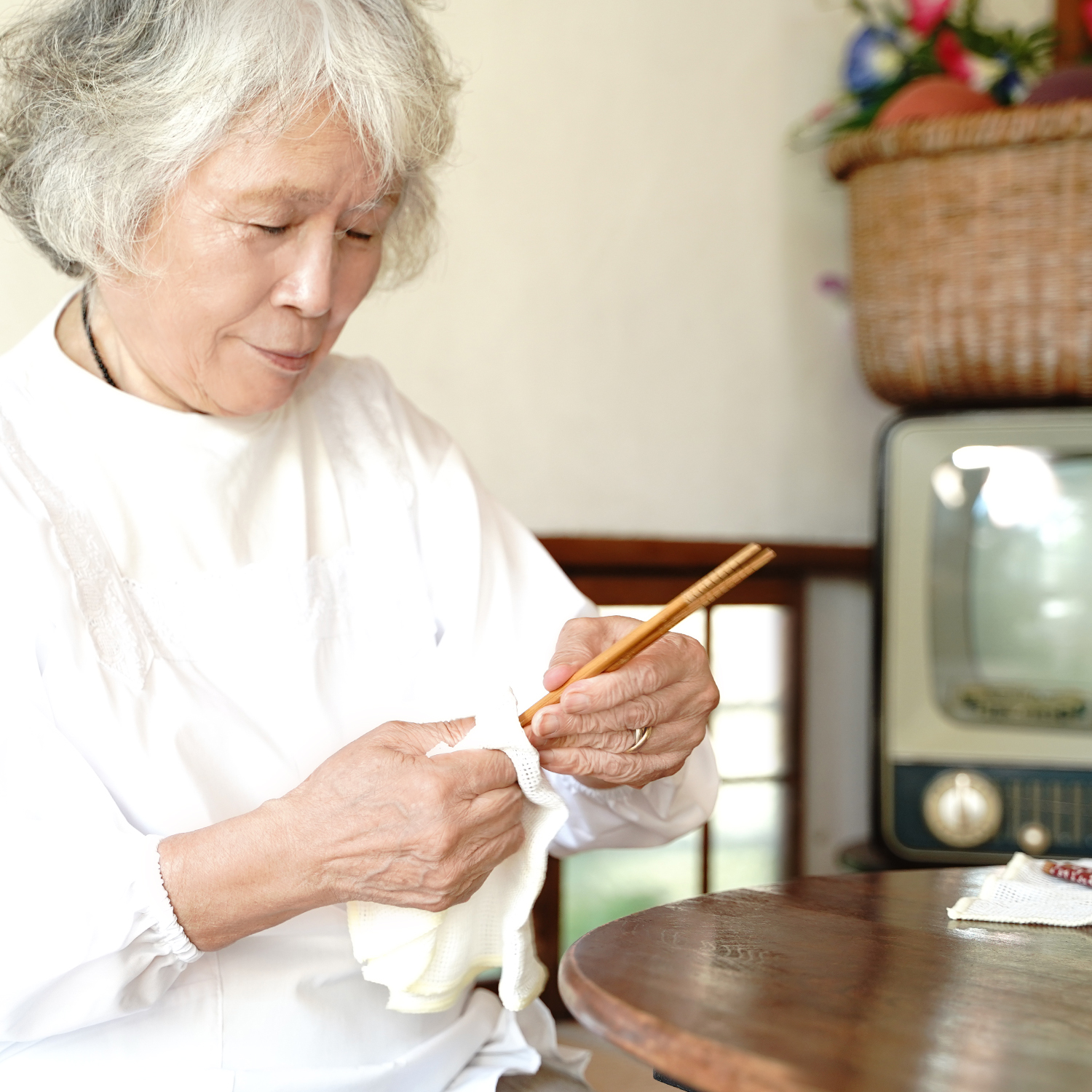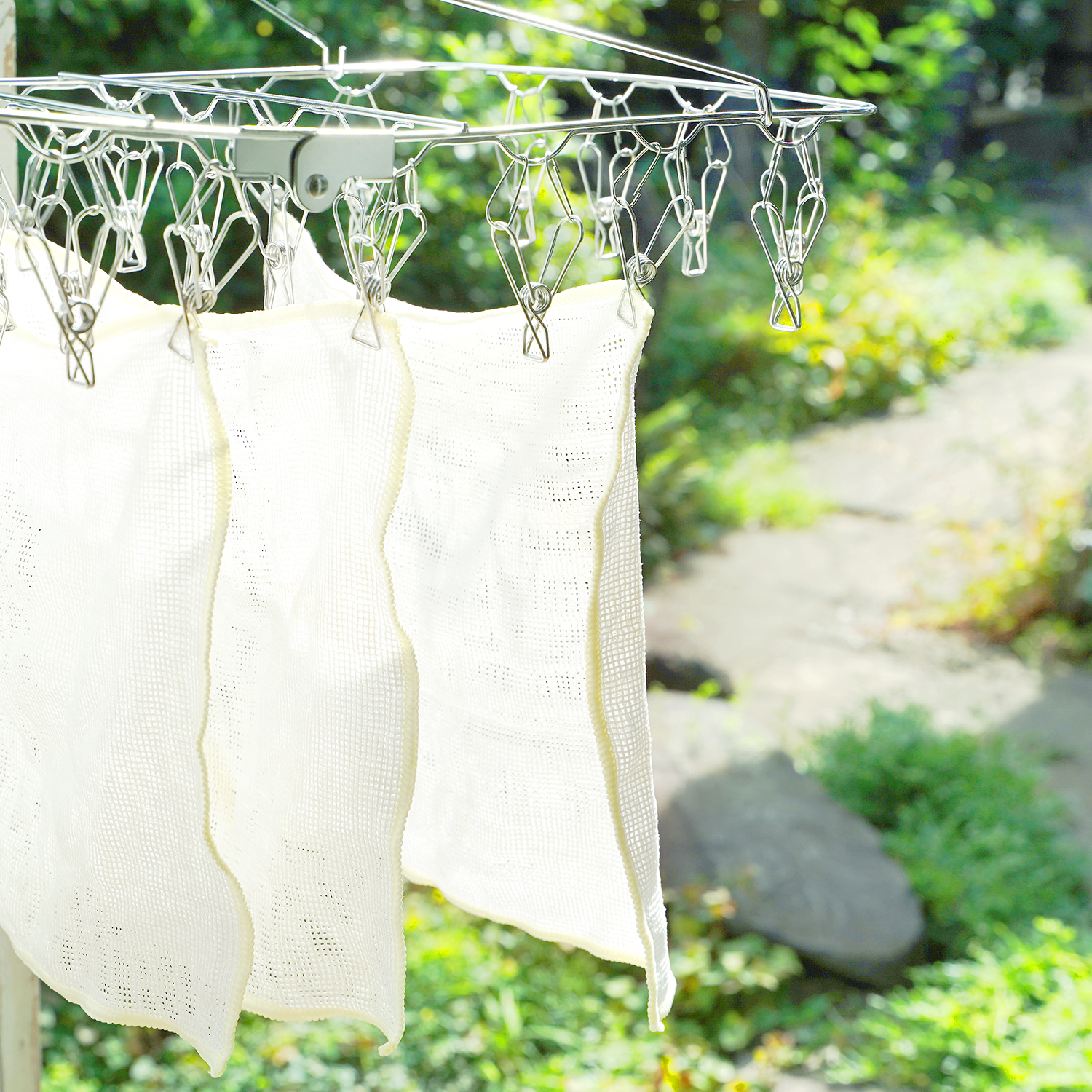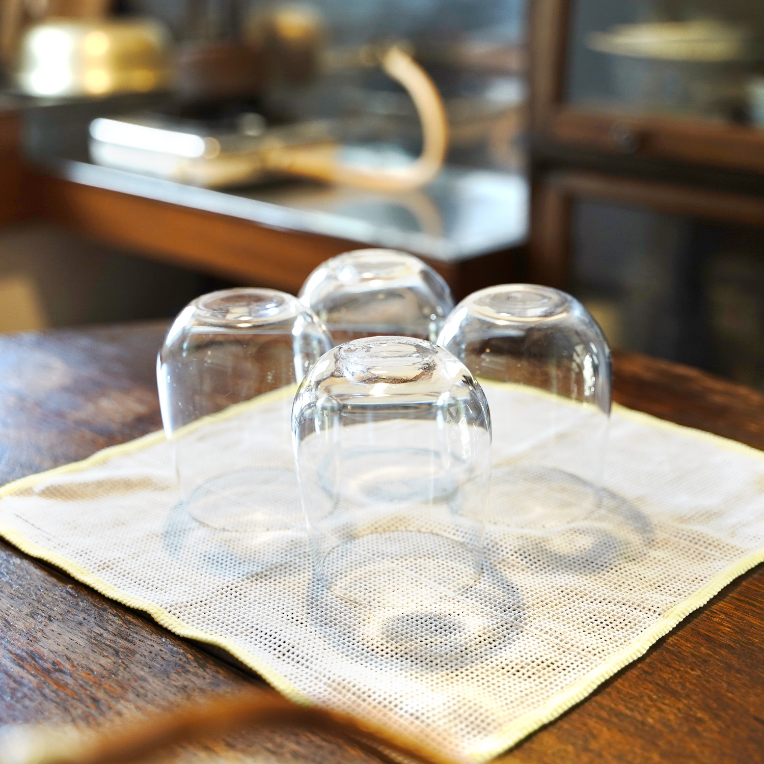 乾いたまま使うと吸水力バツグン。毛羽立ちにくいので、食器やカトラリー、グラスの仕上げ拭きにおすすめです。