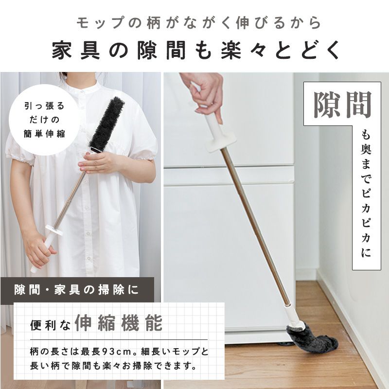 ●伸縮タイプなので、照明やエアコンなどの手の届かない高い所や、家具・家電のスキマなどに便利です。