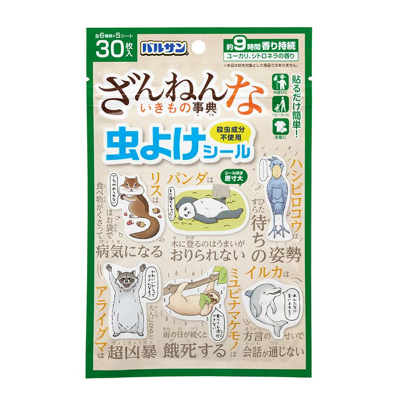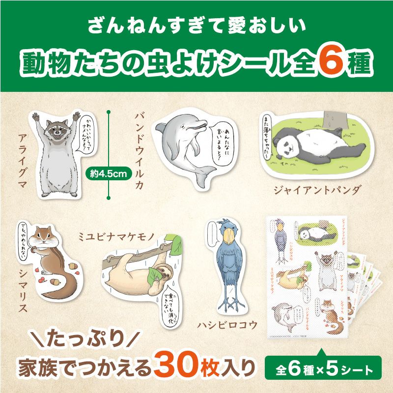 ●ざんねんないきもの事典に登場する動物イラストの虫よけシールです。