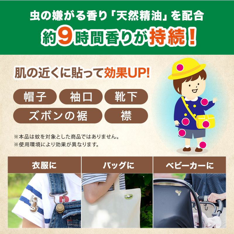 ●服や帽子、身のまわり品に貼るだけで虫よけができます。