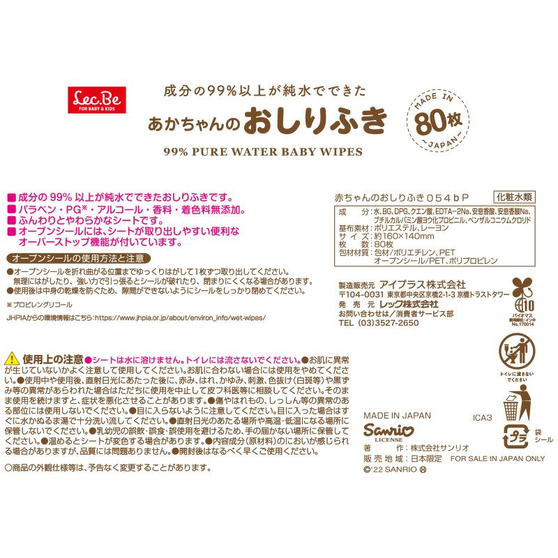 成分の99%以上が純水でできたおしりふき サンリオベビー おしりふき 水99% 80枚 3個入