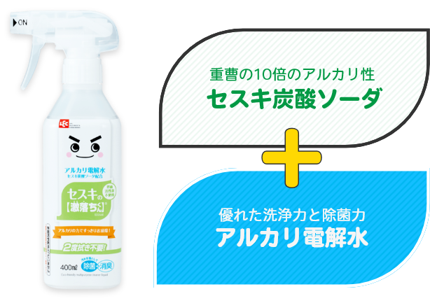 セスキは「セスキ炭酸ソーダ」のこと。アルカリ性が高く、油汚れやタンパク質汚れに対して優れた洗浄効果を発揮します。自然界に存在するものだから、デリケートな赤ちゃんやペットのいる家庭でも使用できます。
