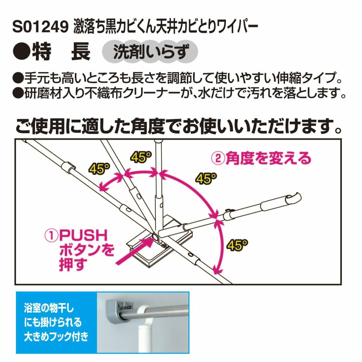 他の画像を見る 送料無料 凸凹(デコボコ)床に!この1本で3WAY 激落ちくん 凹凸床・天井ブラシ&ワイパー 浴室用 伸縮タイプ 通常価格 ¥ 2,480 のところ ¥ 2,356 税込 お気に入りに登録する