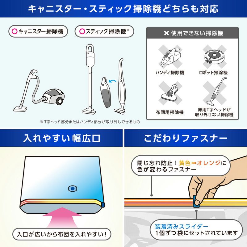 他の画像を見る 送料無料 圧縮袋フィルムの内側層に、2種類の薬剤!ワイドなクッションが色々なノズル形状にフィット。 バルサン 両掃除機対応 ふとん圧縮袋 LL 2枚入 ¥ 2,178 税込 お気に入りに登録する